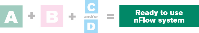 We've made ordering easy. To make a complete system you can choose your required nFlow™ system (A) and Bonnet (B), then either select a Nasal Prong (C) and/or Nasal Mask (D). At any time you can order separate items according to your needs which also avoids unnecessary waste. Use the size guide provided to choose the correct option for your patient.